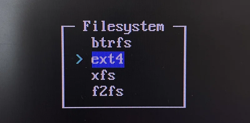 ⡷ Generally, for my root partitions on Linux, I choose ext4. Simple and efficient