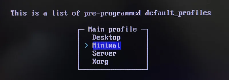 ⡷ I always start with a single Lego brick whenever a Linux system allows me to. The minimal profile leaves me with 167 pre-installed packages.
