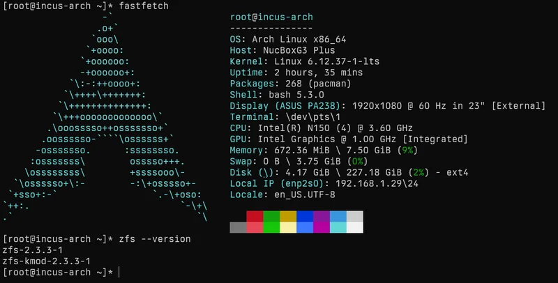 The step-by-step Arch Linux installation guide for ZFS and Incus.