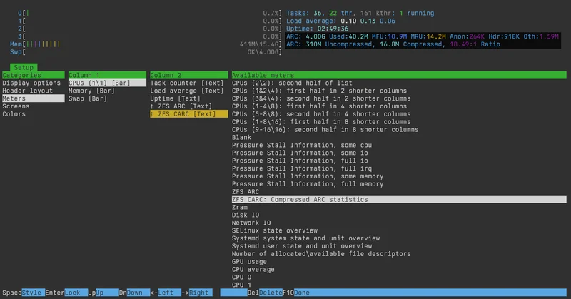 $ cat /sys/module/zfs/parameters/zfs_arc_max (confirm the new limits)